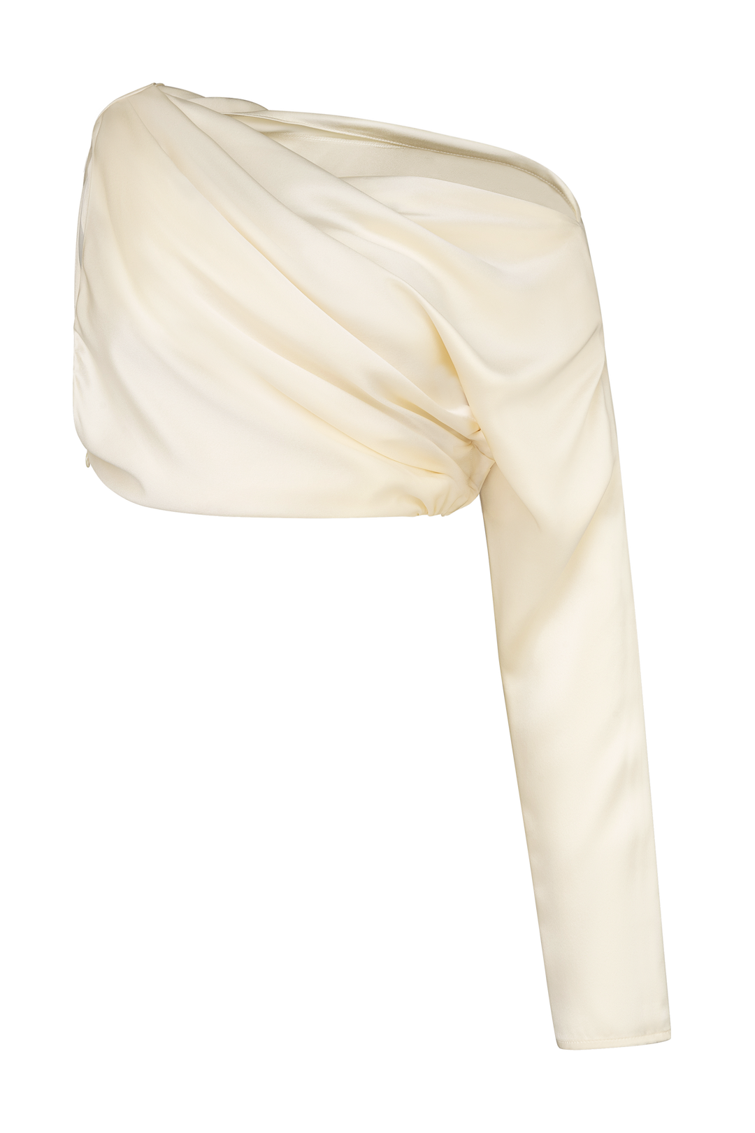 YAEL Black Silk Blouse – Back view showcasing the lightweight silk fabric and softly draped silhouette.
